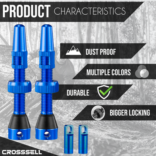 CROSSSELL Tubeless Valve Stems for MTB and Road Bike, Presta Valve Stem 44mm, Lightweight Aluminum with Removable Core [BLUE 1 Pair]