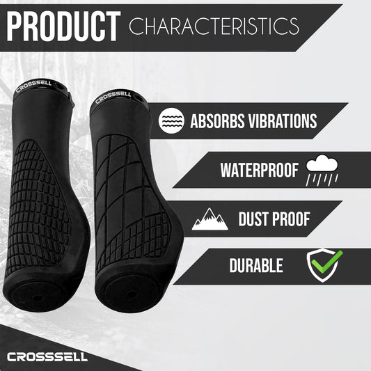 CROSSSELL Ergonomic Bike Grips - Handlebar Grips for Mountain Bikes, Non-Slip Lock-On Grips [BLACK]