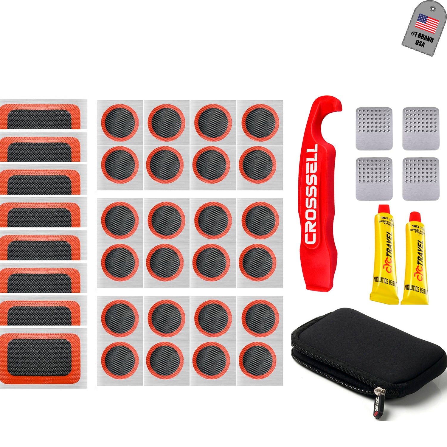 CROSSSELL Bike Tire Repair Kit – Includes Vulcanized Tire Patches, Bike Tire Levers, Compact Bicycle Tire Repair Kit for Road, MTB & Gravel Bikes