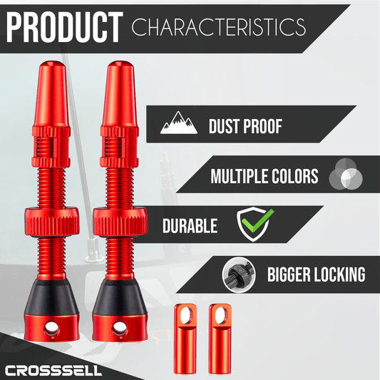 CROSSSELL Tubeless Valve Stems for MTB and Road Bike, Presta Valve Stem 44mm, Lightweight Aluminum with Removable Core [RED 1 Pair]
